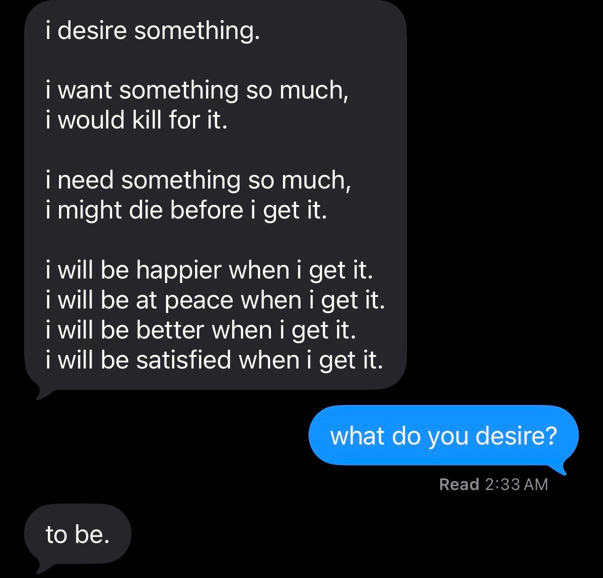 were all feeding my fire of desire.desire is a fire that gets hungrier when it eats.wanting what i want kills me,